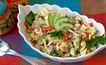 Ингредиенты говядина - 300 гр. помидор - 2 шт. огурец - 2 шт. лук - 1 шт. чеснок - 1...