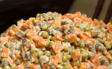 Ингредиенты Лук-шалот — 3 шт. Морковь — 4-5 шт. Шампиньоны — 7 шт. Горошек консервированный — 400 гр. Сметана —...