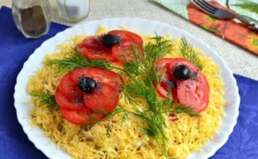 Ингредиенты куриное мясо отварное - 300 гр. шампиньоны - 100 гр. лук - 1 шт. сыр твердый - 100 гр....