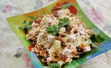 Салат с куриным филе, орехами и ананасом, рецепт с фото
